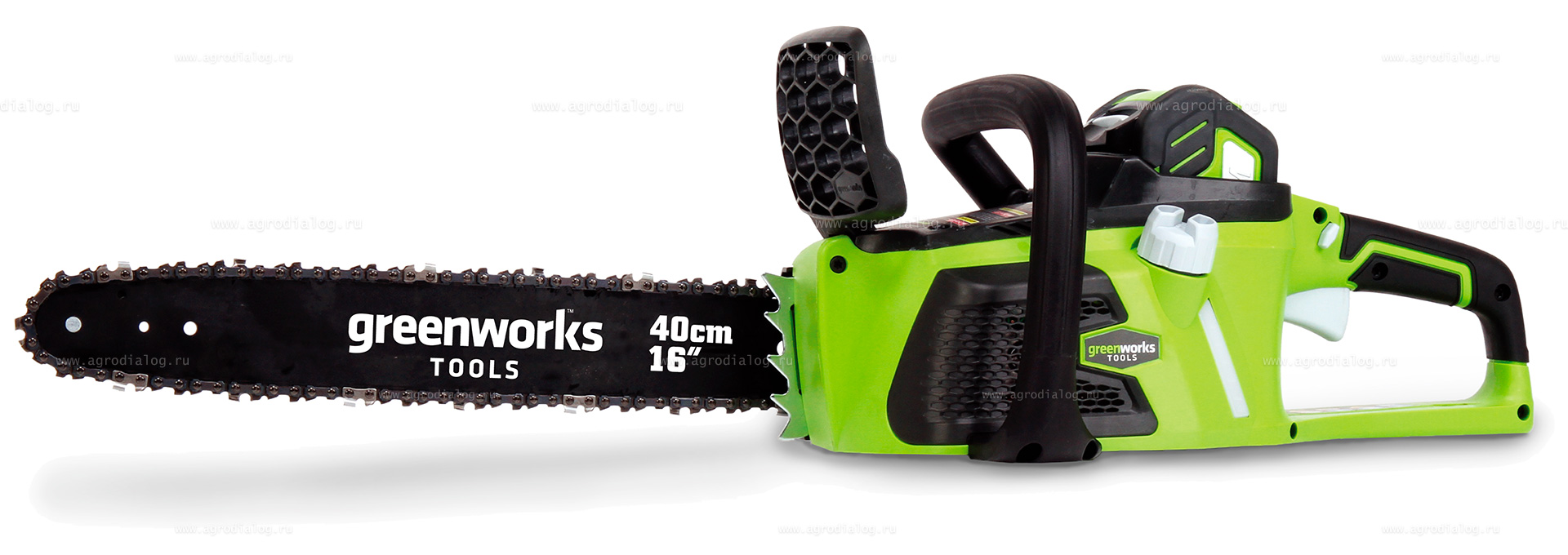 - Аккумуляторная пила Greenworks GD40CS40K5 работает от аккумуляторной батареи, которая подходит ко всем инструментам системы Greenworks 40V. Один аккумулятор и одно зарядное устройство для разных групп инструментов – это рационально и эффективно.