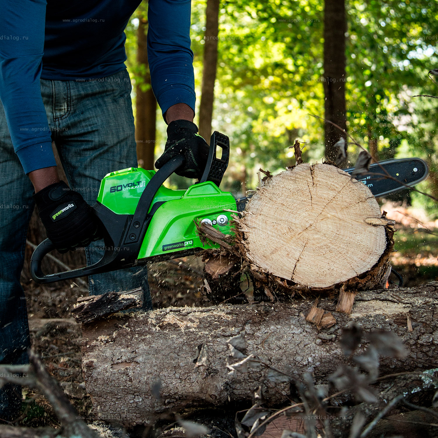 Аккумуляторная пила Greenworks GD60CS40 идеально подходит для выполнения различных видов работ: строительство, заготовка дров, обрезка и валка деревьев.