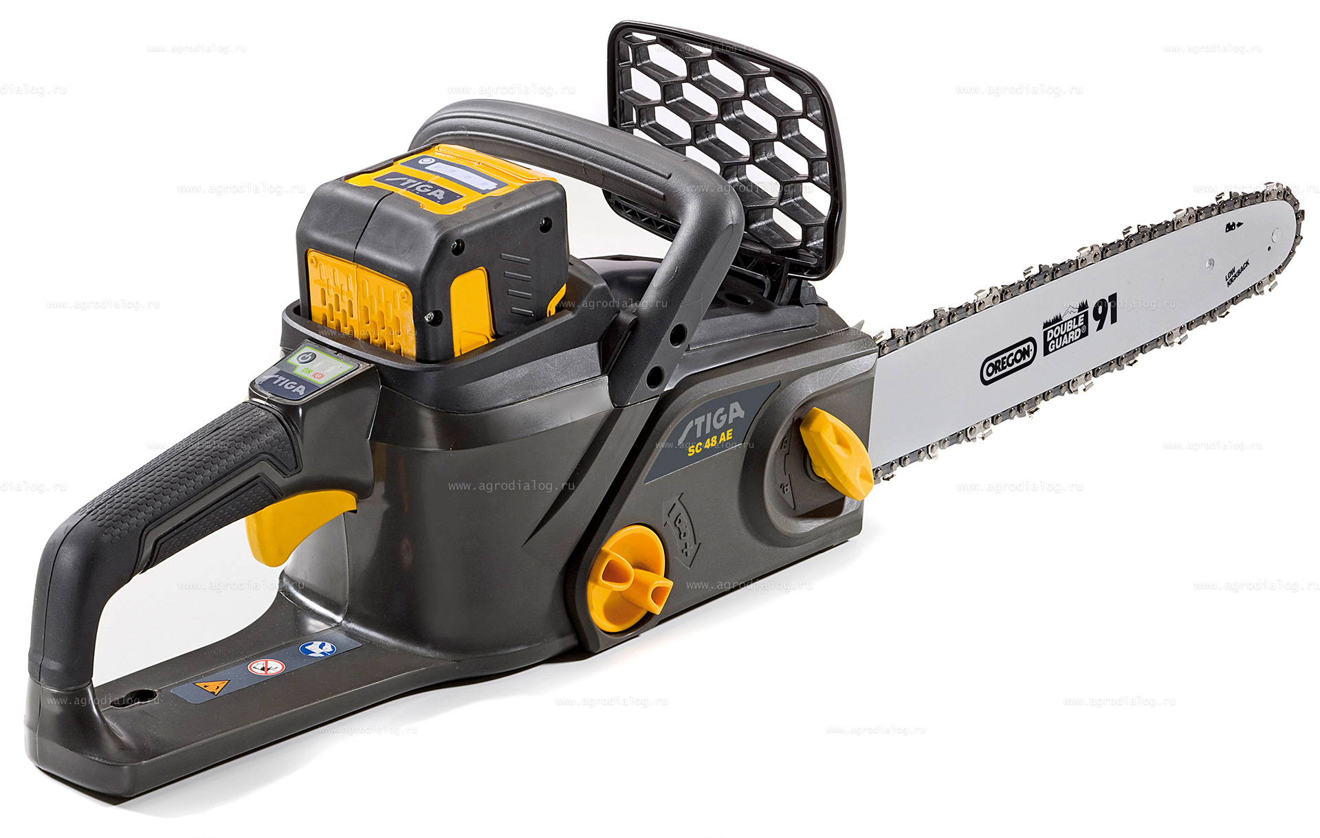 - Аккумуляторная пила Stiga SC 48 AE имеет чрезвычайно простые органы управления. Это означает, что вы можете справиться с любой задачей комфортно и уверенно, и для этого вам потребуется всего одно нажатие кнопки.