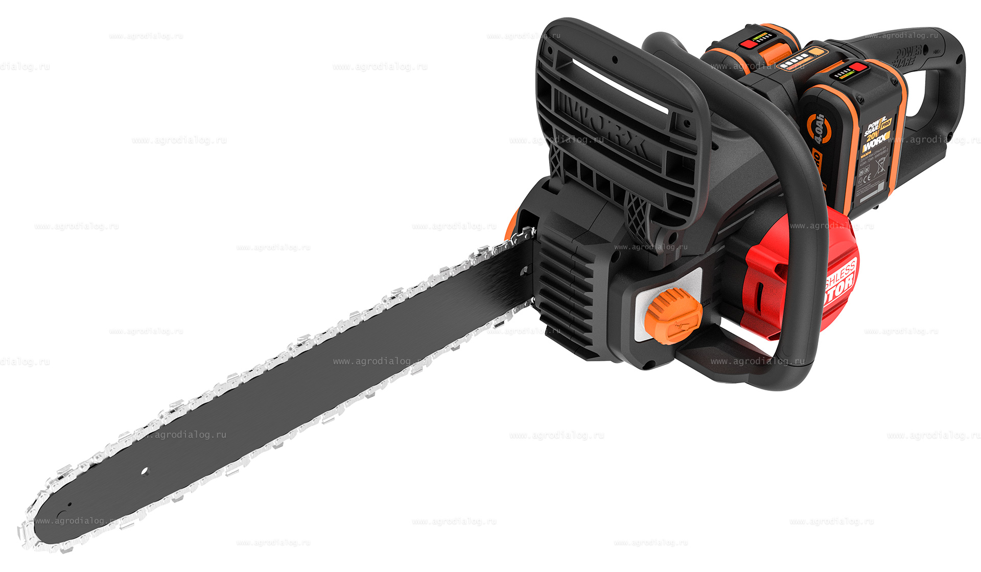 - Аккумуляторная пила Worx Nitro WG385E имеет чрезвычайно простые органы управления. Это означает, что вы можете справиться с любой задачей комфортно и уверенно, и для этого вам потребуется всего одно нажатие кнопки.