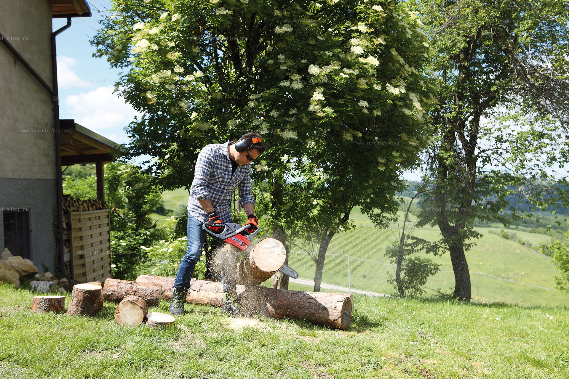 - Масса бензопилы тщательно сбалансирована, что делает работу менее утомительной и гарантирует полный контроль над производимыми операциями.