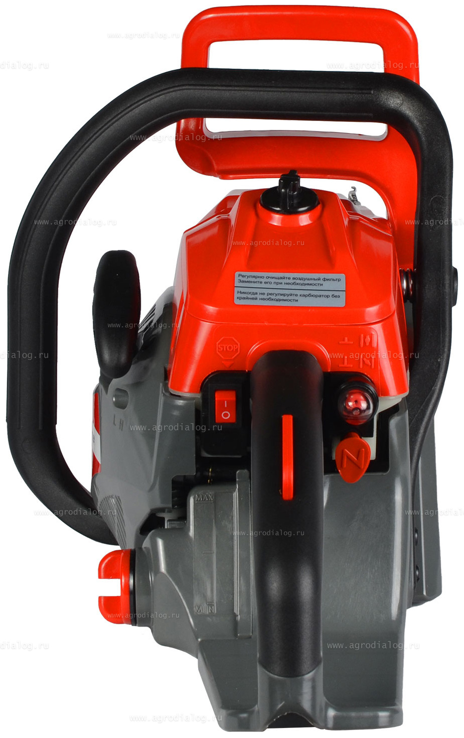 - Масса бензопилы тщательно сбалансирована, что делает работу менее утомительной и гарантирует полный контроль над производимыми операциями.