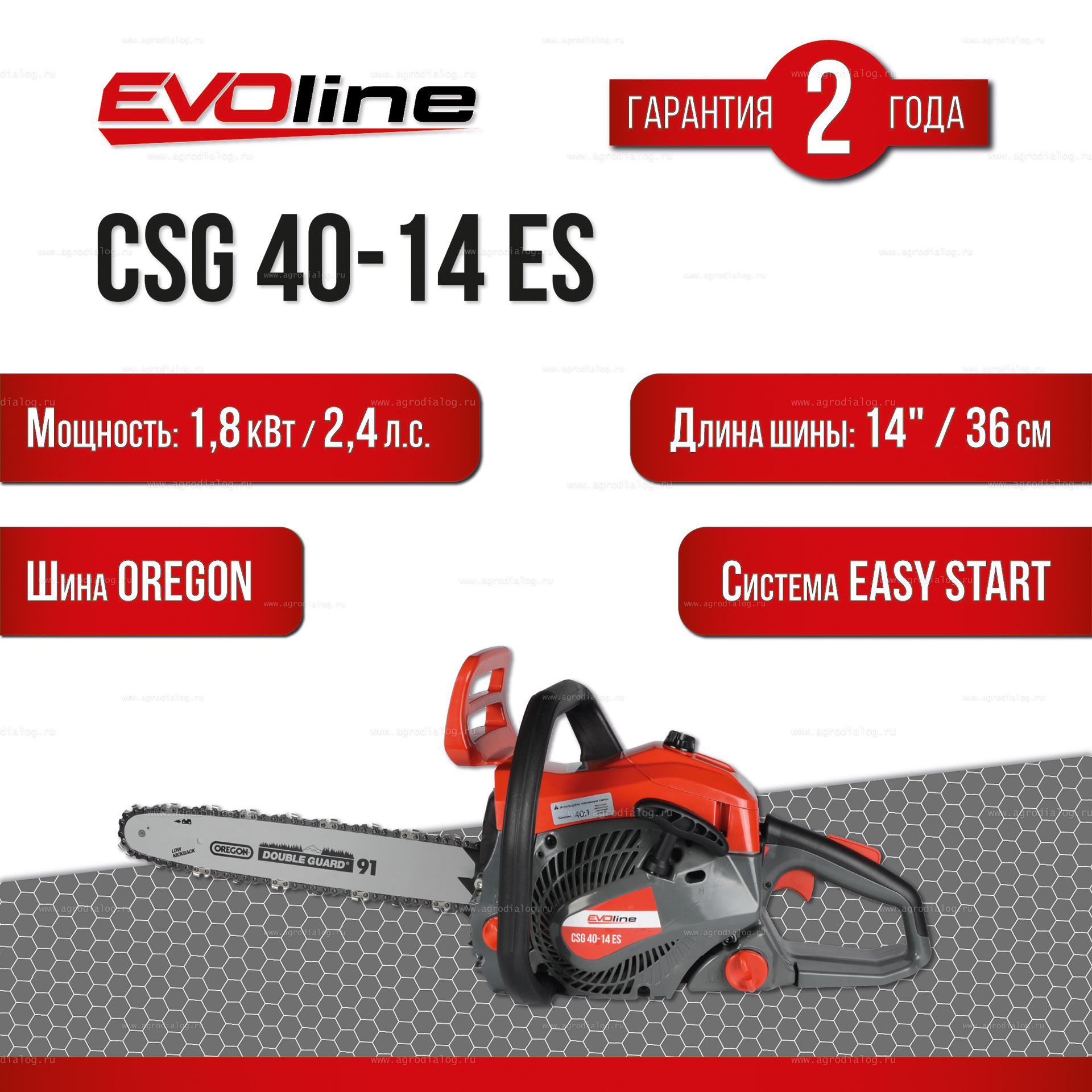 - Если для Вас важна высокая производительность и долгий срок эксплуатации, то бензопила EVOline CSG 40-14 ES – правильный выбор.