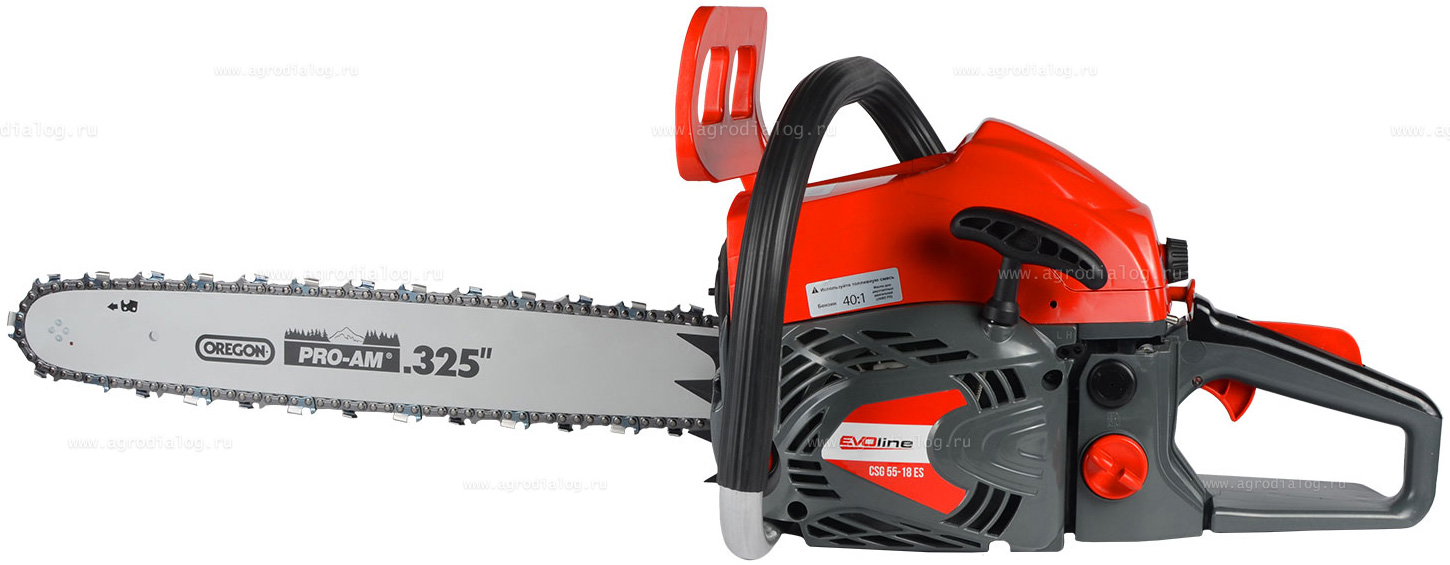 - Если для Вас важна высокая производительность и долгий срок эксплуатации, то бензопила EVOline CSG 55-18 ES – правильный выбор.