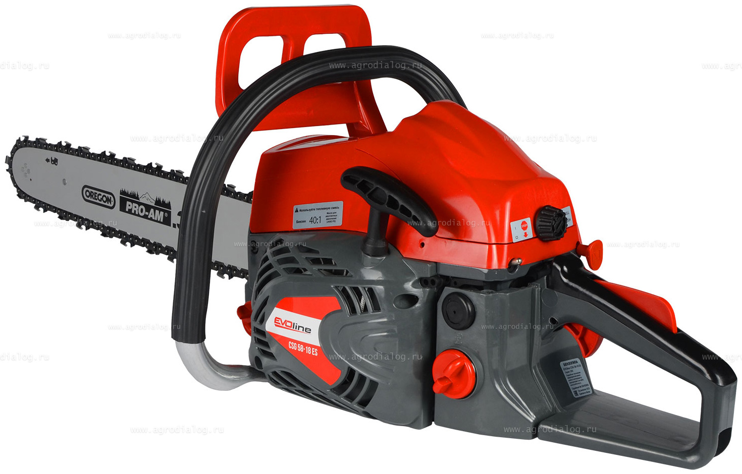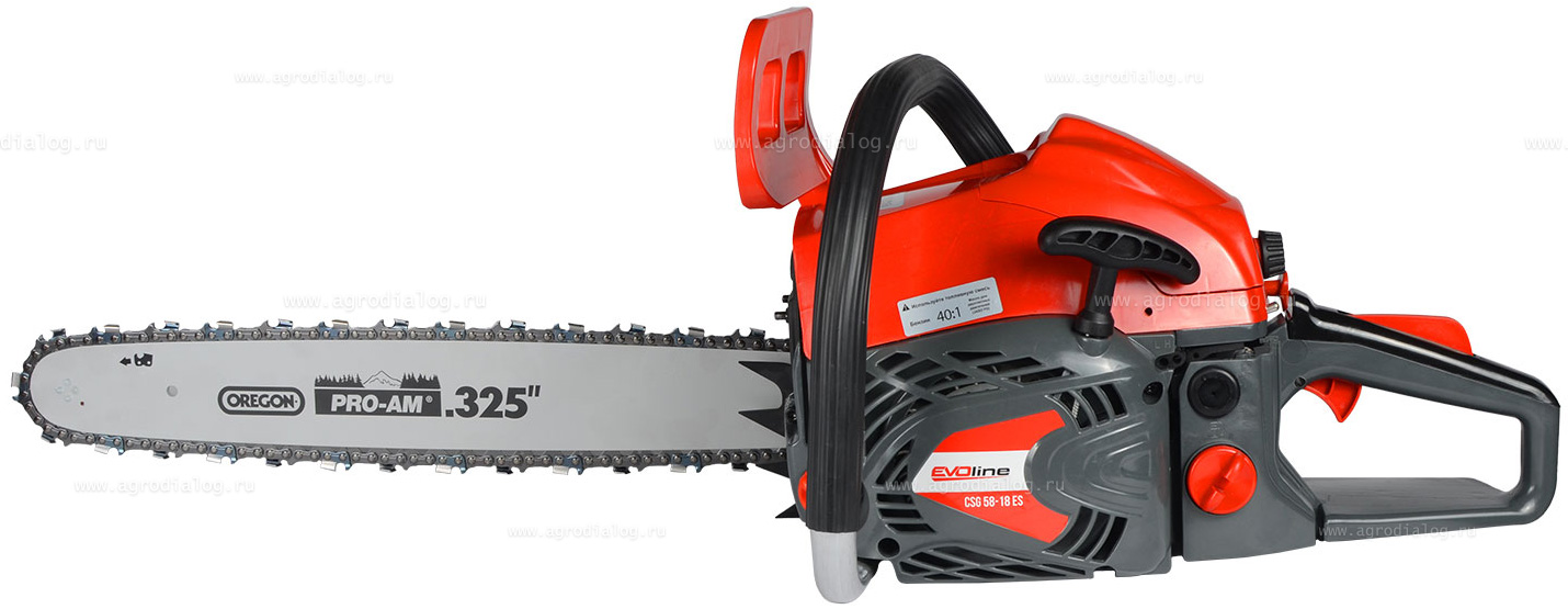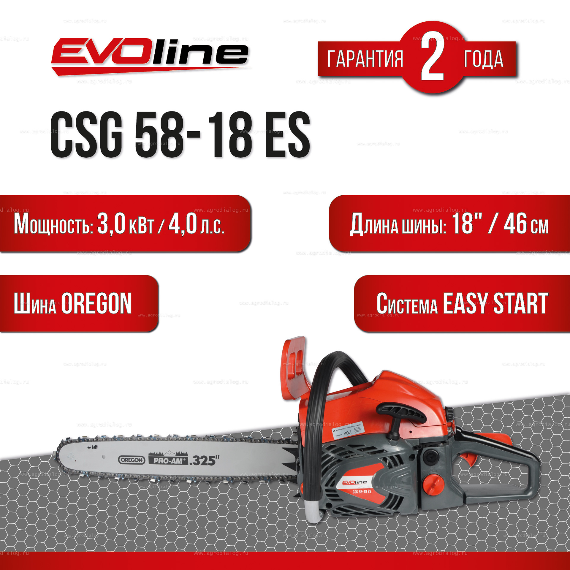 - Если для Вас важна высокая производительность и долгий срок эксплуатации, то бензопила EVOline CSG 58-18 ES – правильный выбор.