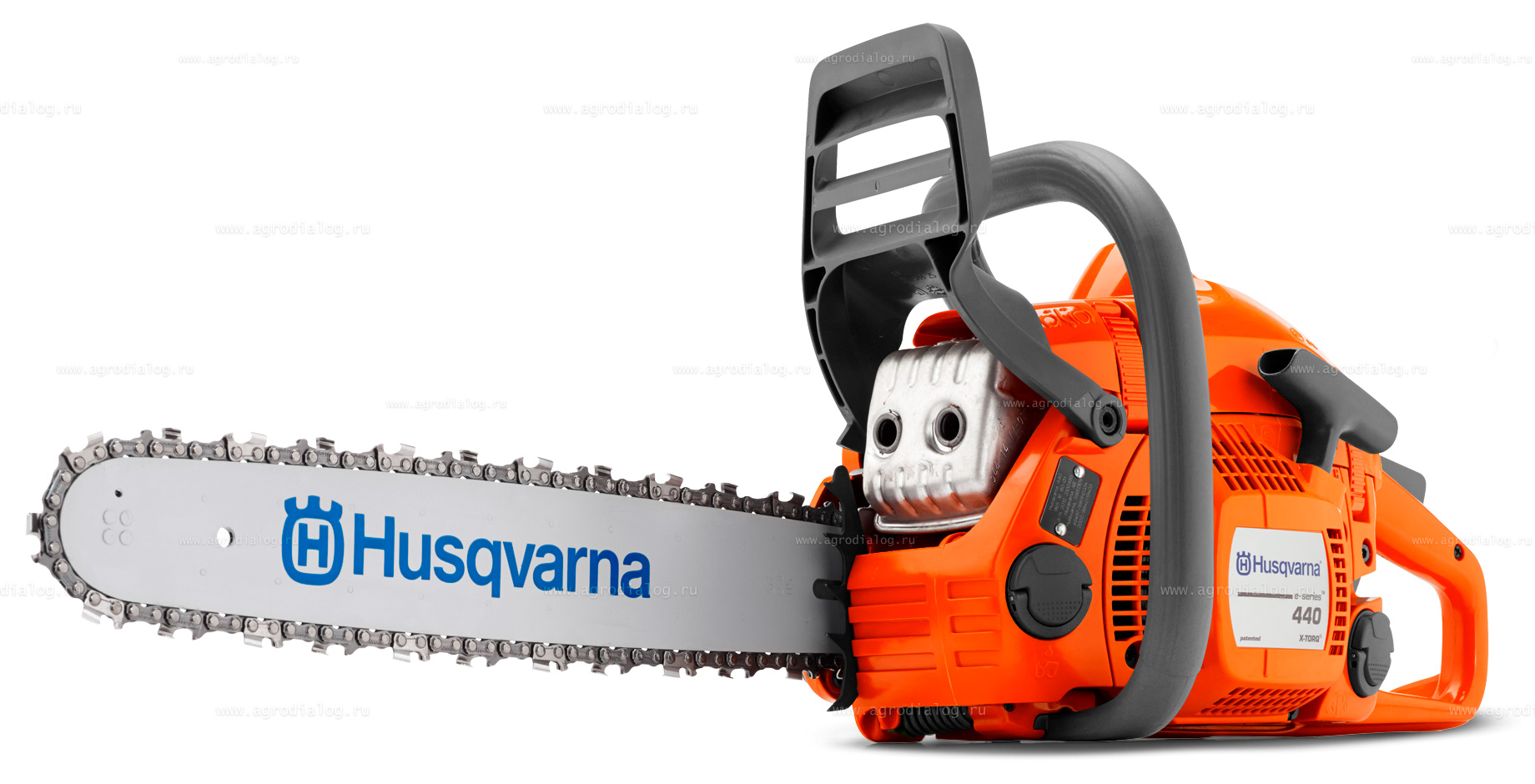 Полупрофессиональная бензопила Husqvarna 440e II с двигателем X-TORQ экономит потребление топлива во время работы и снижает количество выхлопов в соответствии с самыми современными требованиями по безопасности окружающей среды. Комбинированное управление дроссельной заслонкой/остановкой двигателя обеспечивает легкий запуск и снижает риск нестабильной работы двигателя. С помощью топливного насоса можно вручную, нажатием пальца подать топливо в карбюратор. Это позволяет сократить количество пусковых рывков после длительного перерыва в эксплуатации. Система LowVib защищает тело и руки оператора от вибрации двигателя. Центробежная система очистки воздуха Air Injection для снижения износа и увеличения промежутков между чистками фильтра. Бензопила Husqvarna 440e II оборудована системой Smart Start: при натяжении троса стартера дополнительная пружина сжимается до того момента, пока сила натяжения не преодолеет сопротивления сжатия. После этого пружина раскручивается, что способствует запуску двигателя. Быстрое и легкое натяжение цепи, а также сборка шины и цепи без использования каких-либо инструментов. Нужно лишь ослабить гайку крепления крышки цепной звёздочки, и с помощью регулировочного колесика легко и быстро натянуть цепь. Индикатор уровня топлива позволяет увидеть, когда необходимо дозаправиться. При касании верхним носком шины о дерево во время работы может произойти обратный отскок. Тормоз цепи срабатывает автоматически, не зависимо от положения бензопилы. Защелки на крышке цилиндра экономят время при замене свечей зажигания и чистке.
