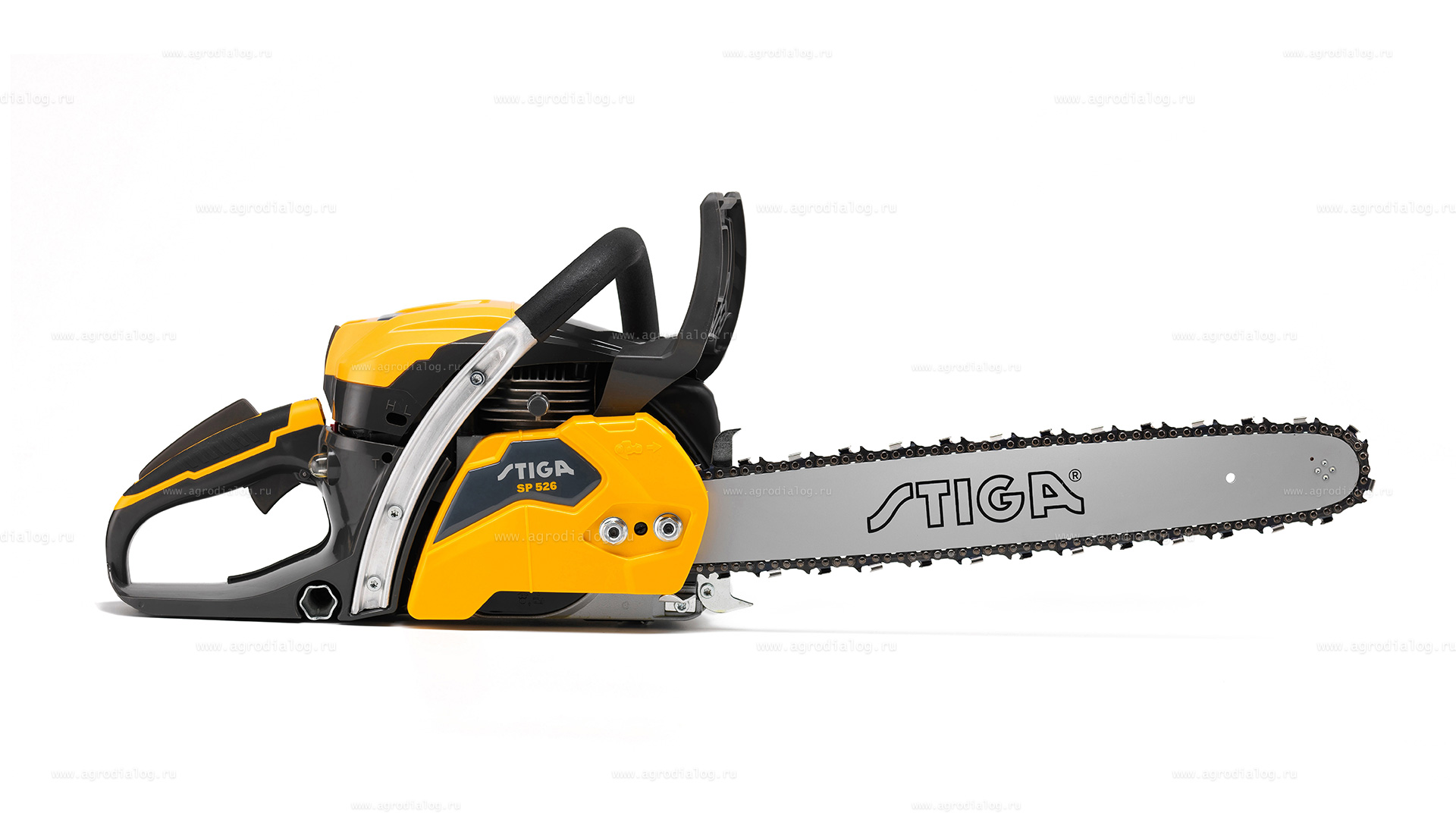 - Бензопила Stiga CS 755 20" оборудована боковым натяжением цепи. Доступ к натяжному винту обеспечивается сбоку через крышку цепной звёздочки. Это предотвращает контакт рук с острой цепью и кончиками зубчатого упора.