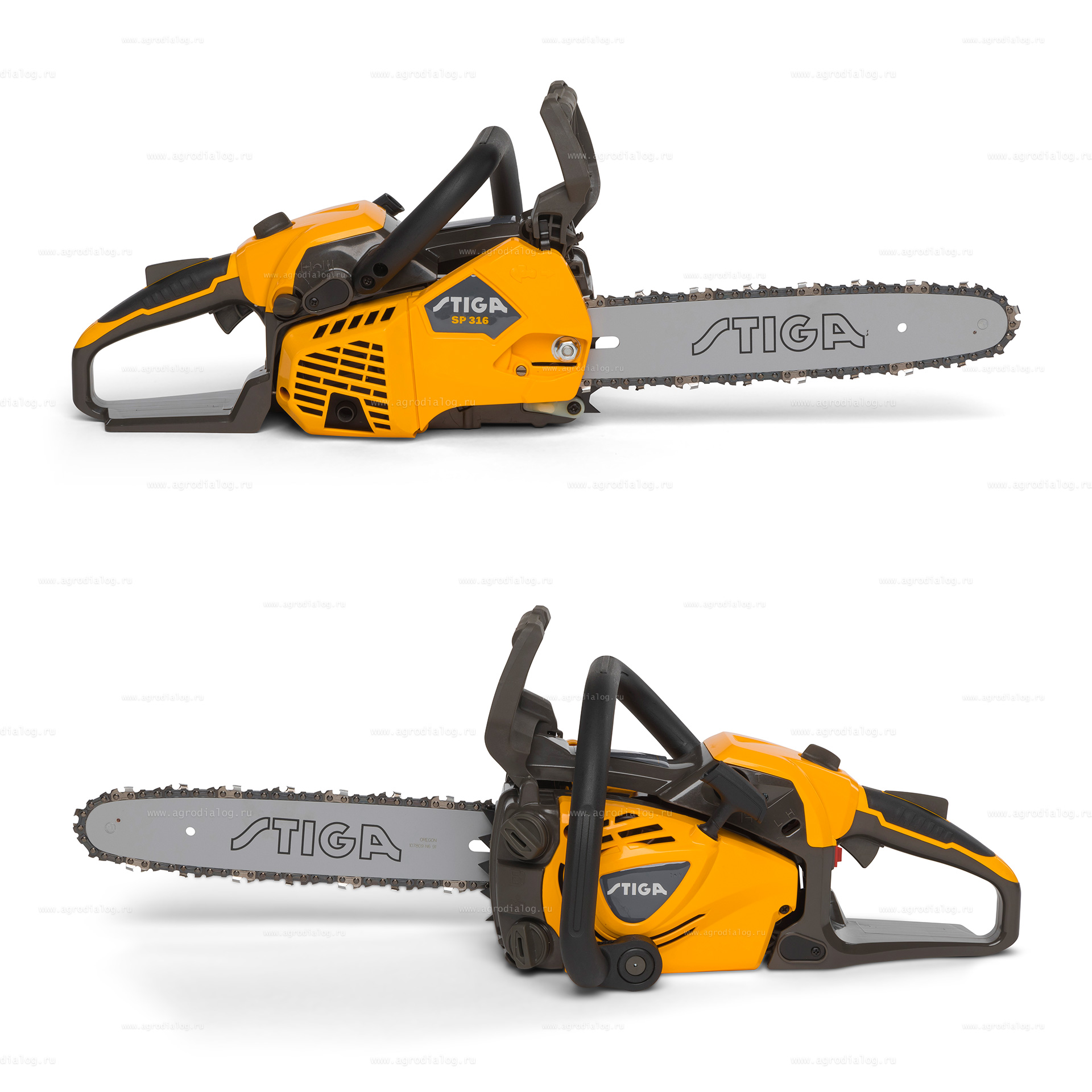 - Бензопила Stiga SP 316 оснащена антивибрационной системой, которая поглощает практически все колебания от двигателя и пильной цепи на рукоятку.