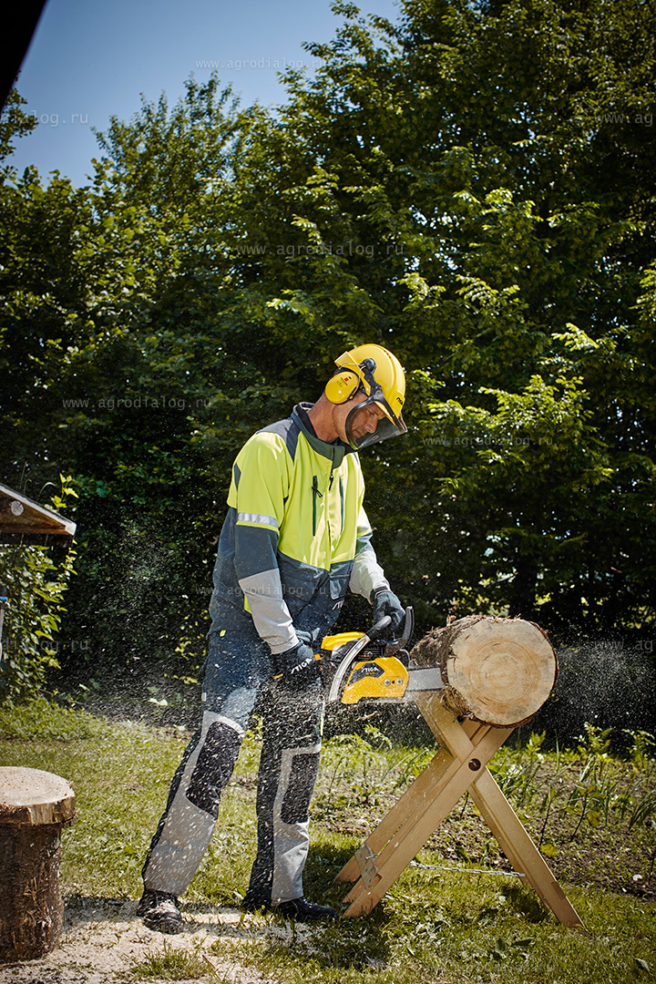 - Эргономичная передняя рукоятка и задняя рукоятка с мягкой поверхностью в сочетании с удобно расположенными рычагами обеспечивают безопасную и комфортную работу.