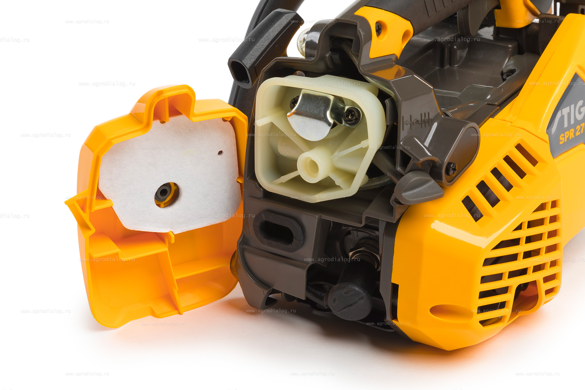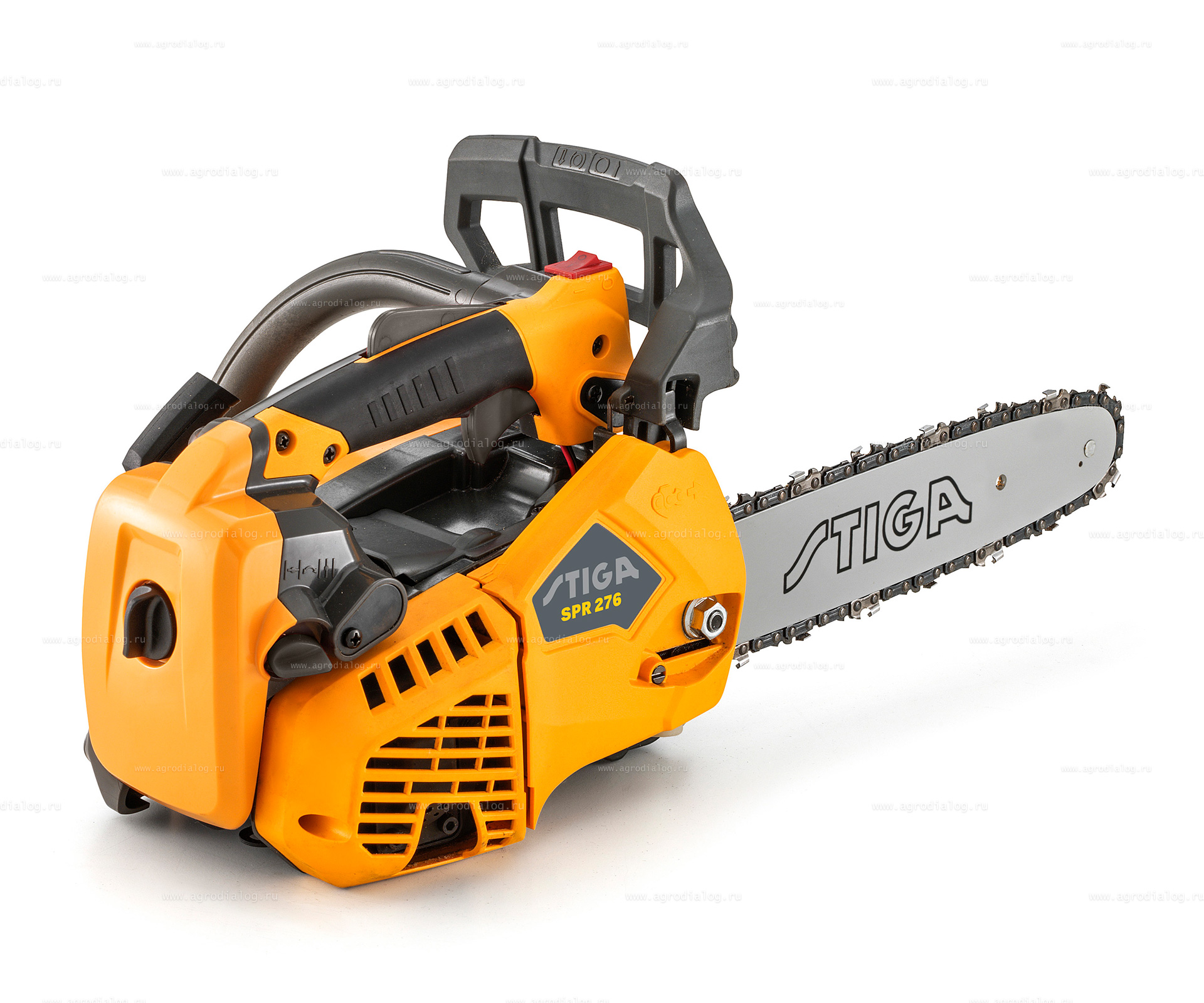 - Бензопила Stiga SPR 276 оборудована боковым натяжением цепи. Доступ к натяжному винту обеспечивается сбоку через крышку цепной звёздочки. Это предотвращает контакт рук с острой цепью и кончиками зубчатого упора.