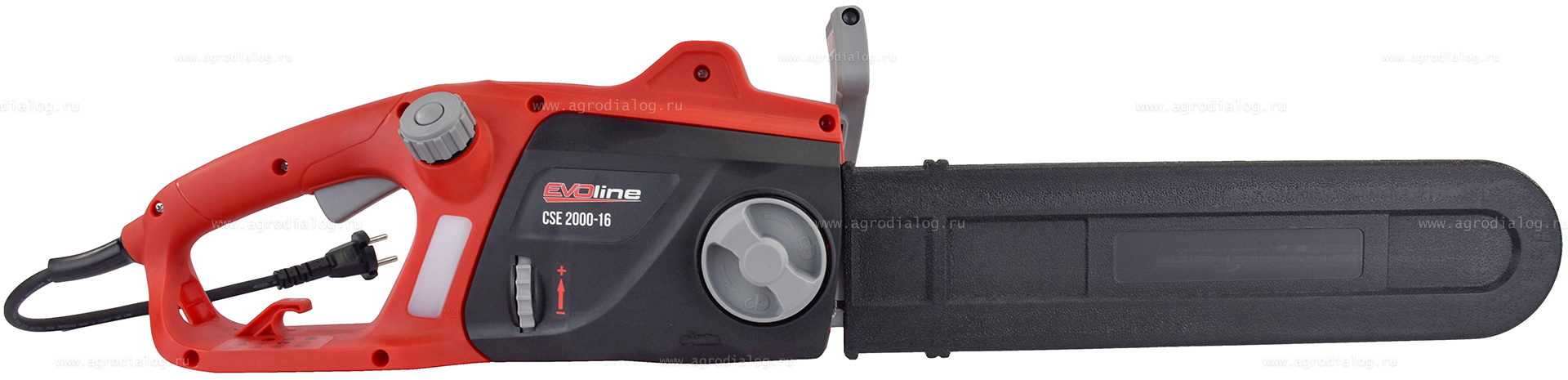- Электропила EVOline CSE 2000-16 имеет чрезвычайно простые органы управления. Это означает, что вы можете справиться с любой задачей комфортно и уверенно, и для этого вам потребуется всего одно нажатие кнопки.