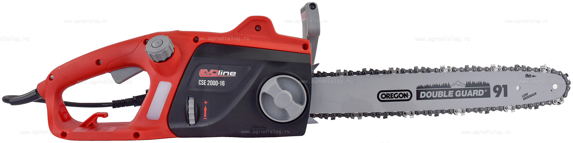- Электропила EVOline CSE 2000-16 оснащена масляным насосом, который обеспечивает равномерную смазку цепи во время работы.