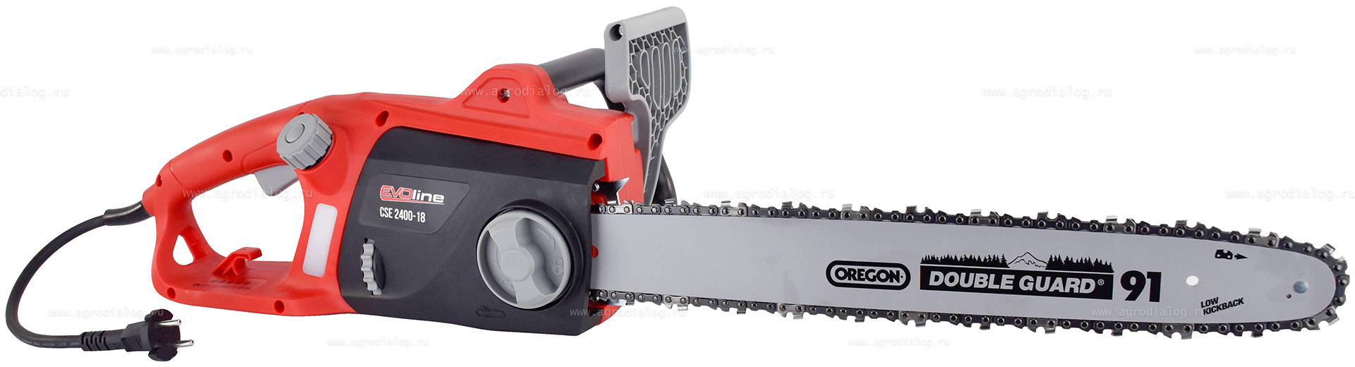 - Электропила EVOline CSE 2400-18 оснащена масляным насосом, который обеспечивает равномерную смазку цепи во время работы.