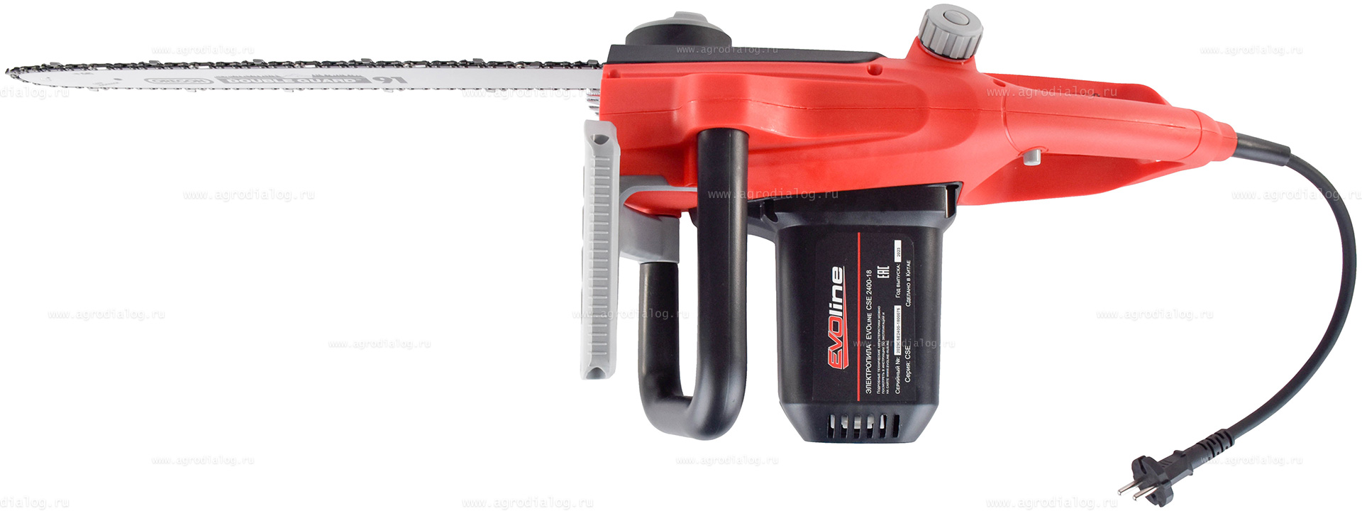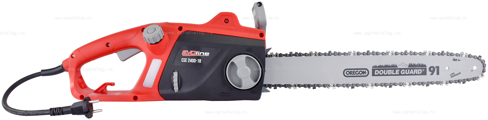 - Электропила EVOline CSE 2400-18 имеет чрезвычайно простые органы управления. Это означает, что вы можете справиться с любой задачей комфортно и уверенно, и для этого вам потребуется всего одно нажатие кнопки.