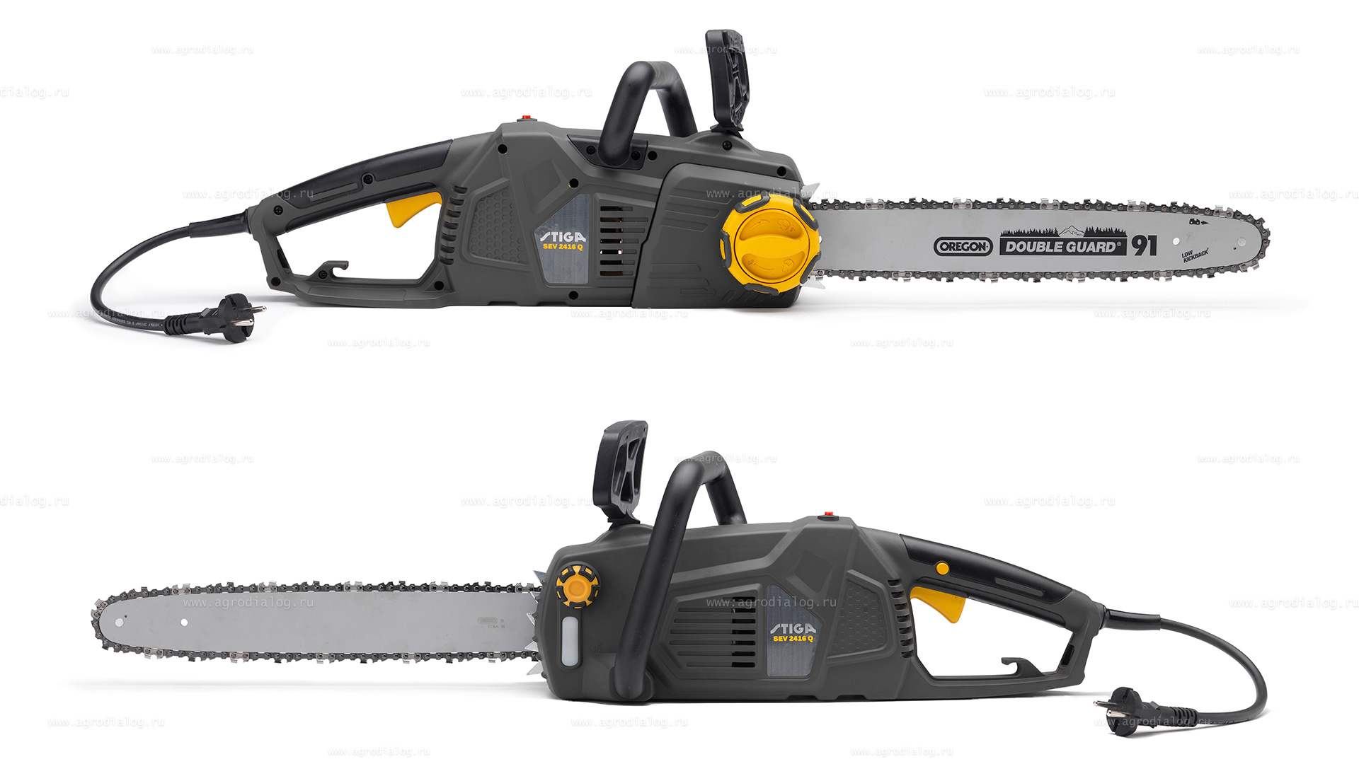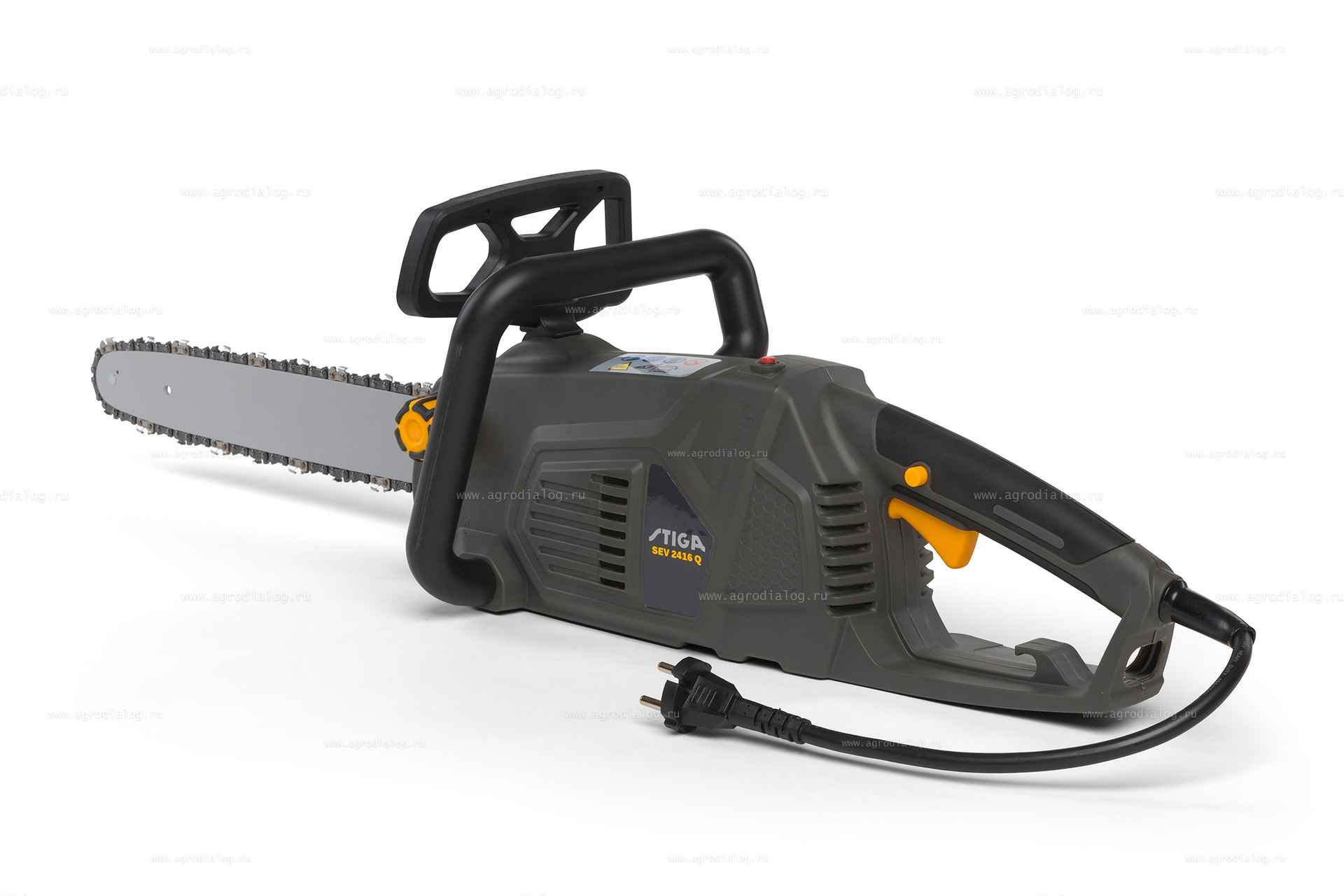 - Электропила Stiga SEV 2416 Q имеет чрезвычайно простые органы управления. Это означает, что вы можете справиться с любой задачей комфортно и уверенно, и для этого вам потребуется всего одно нажатие кнопки.