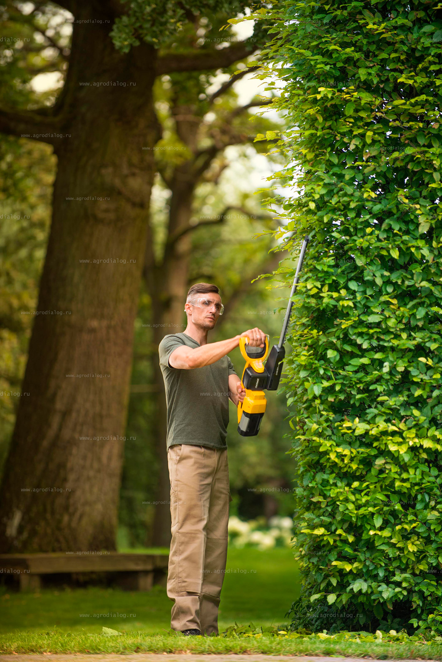 - Высококачественные ножи из закаленной стали обеспечивают максимально эффективную подрезку даже наиболее густых и жестких изгородей.
