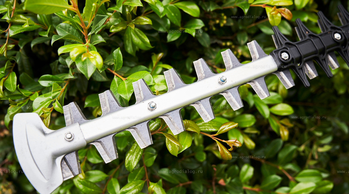 - Высококачественные ножи из закаленной швейцарской стали обеспечивают максимально эффективную подрезку даже наиболее густых и жестких изгородей.