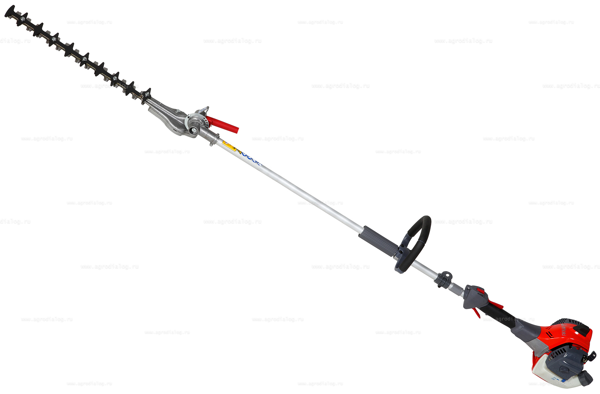- Общая длина инструмента составляет 240 сантиметров. Длинное режущее полотно обеспечивает высокую производительность стрижки.