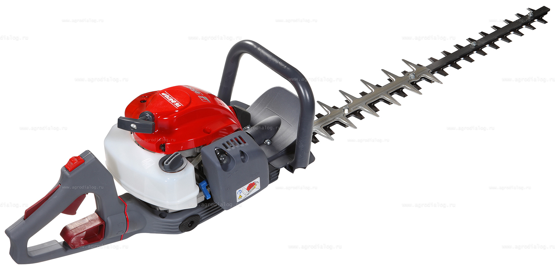 - Задняя рукоятка поворачивается относительно продольной оси инструмента на 180 градусов и фиксируется в трех положениях, что даёт возможность подбирать наиболее удобное положение рук во время работы для удобной подрезки боковых и верхней частей живой изгороди.