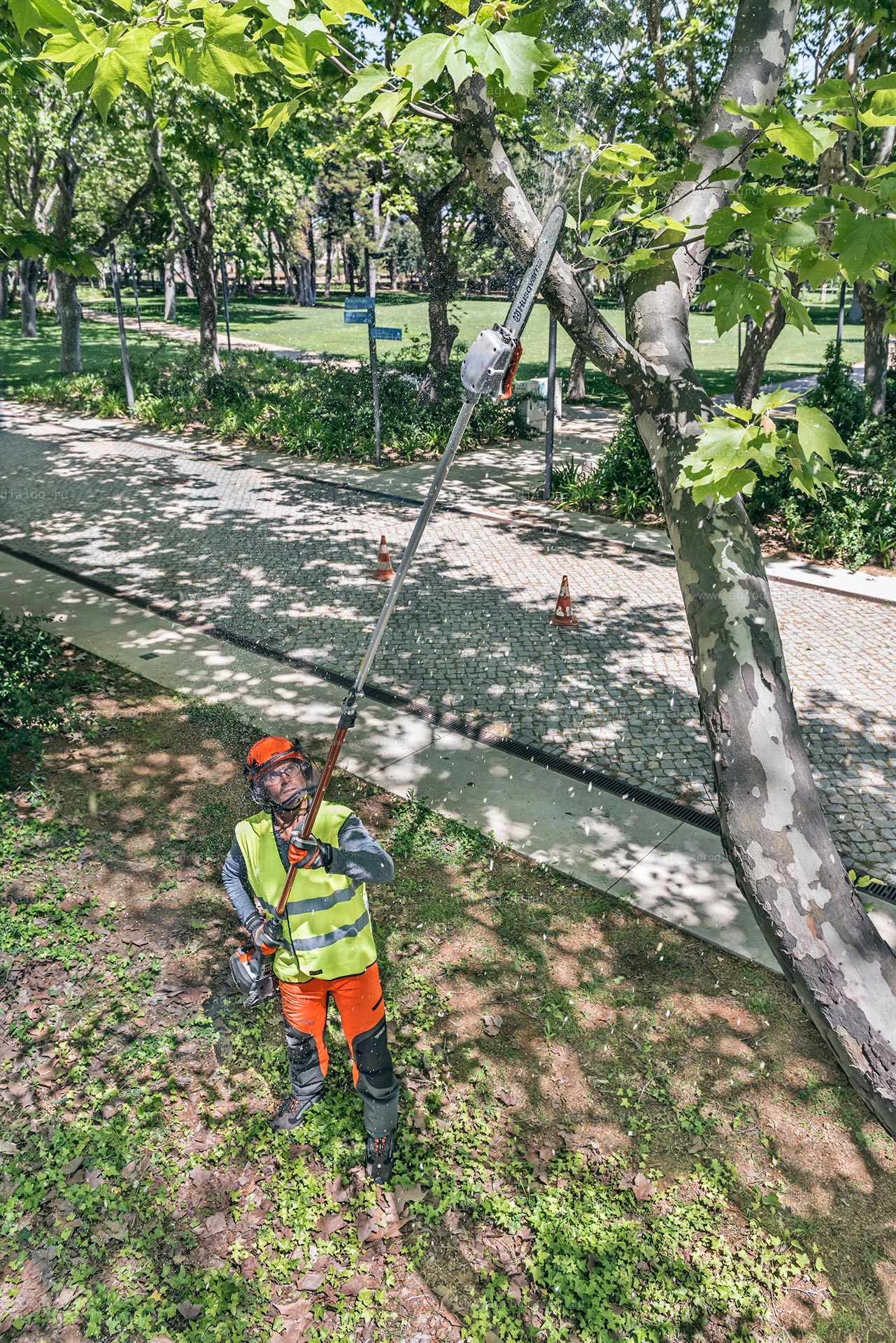 - Отсутствует необходимость использовать высокие садовые лестницы: стоять на земле на ногах гораздо безопаснее, чем на неустойчивой лестнице с работающим инструментом.