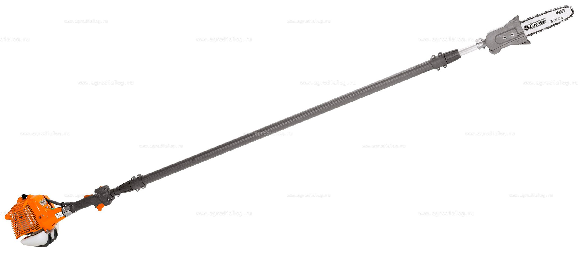 Бензиновый высоторез Oleo-Mac PPX270 поможет сделать работу по уходу за деревьями и прореживанию зеленых насаждений комфортной и безопасной, не прибегая к дополнительным средствам подъёма. С помощью практичной телескопической штанги можно без труда спилить старые, засохшие или больные ветки деревьев на высоте до 5 метров от земли.