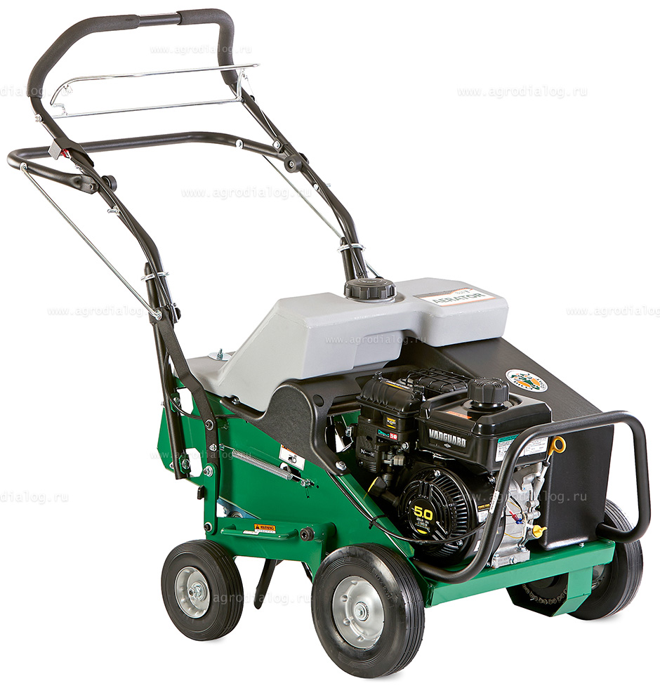 - Небольшие размеры делают профессиональный бензиновый аэратор Billy Goat AE403V идеальным для работы и удобным в хранении.