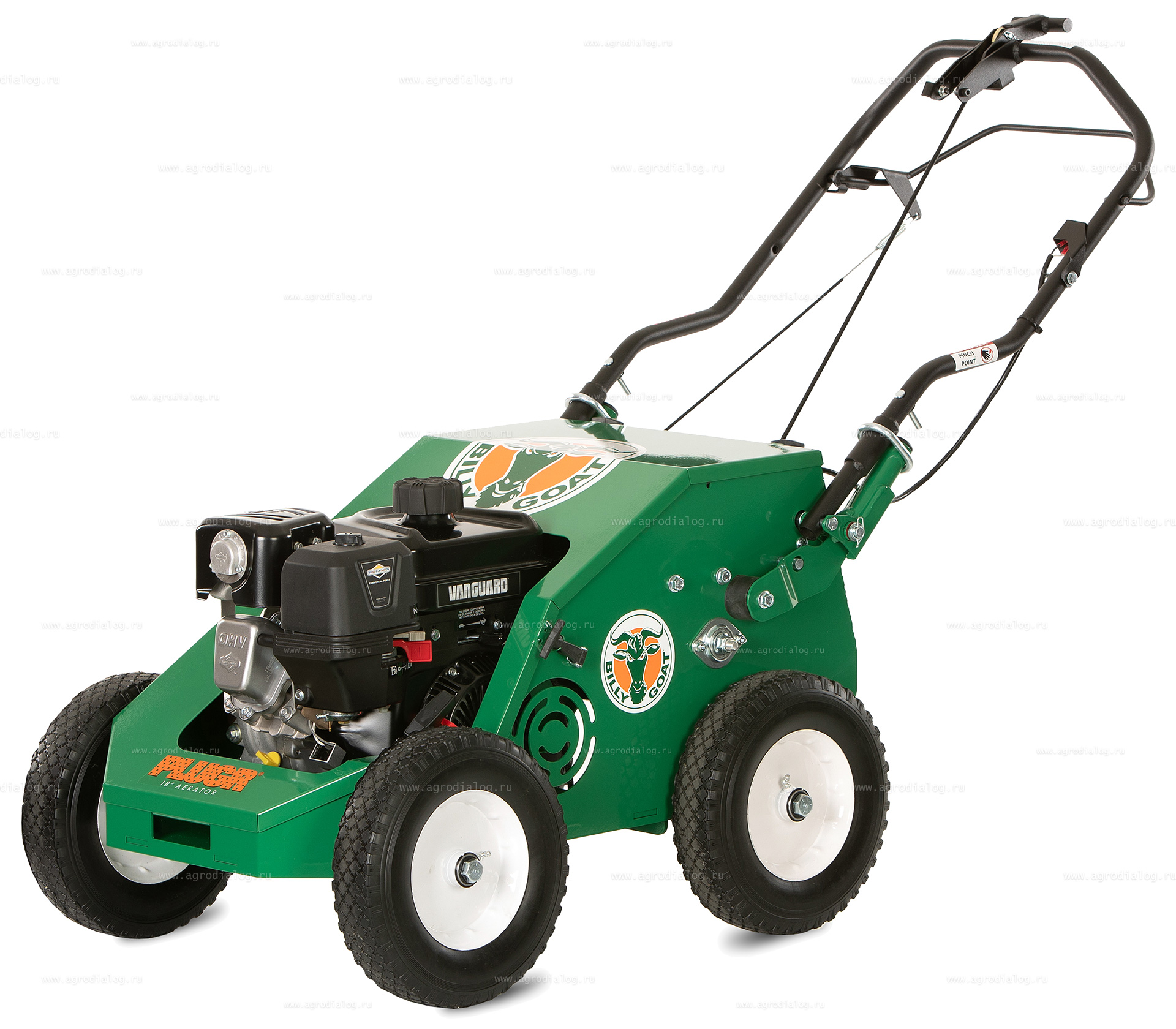 - Небольшие размеры делают профессиональный бензиновый аэратор Billy Goat PL1801V идеальным для работы и удобным в хранении.