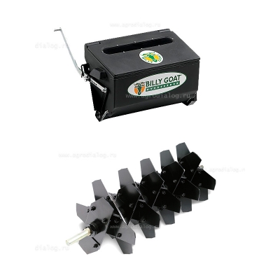В комплект Billy Goat 350328 входят дельта-ножи 350113 (рабочий орган с расположенными под углом фиксированными ножами из изотермически обработанной стали) и бак для семян 350325. Легкий, не подверженный коррозии и износу семенной бак из поликарбонатного материала с объемом загрузки до 11.3 кг. Уровень семян можно быстро и легко проверить через прозрачное окно. Бак оснащен рукояткой для открывания и закрывания функции сеяния. Для установки на профессиональный вертикуттер Billy Goat PR550 необходимо приобрести колесо 350103.