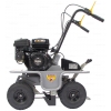 - Широкие пневматические колеса со специальным протектором не повреждают газон и обладают высокой проходимостью на участках со сложным рельефом.