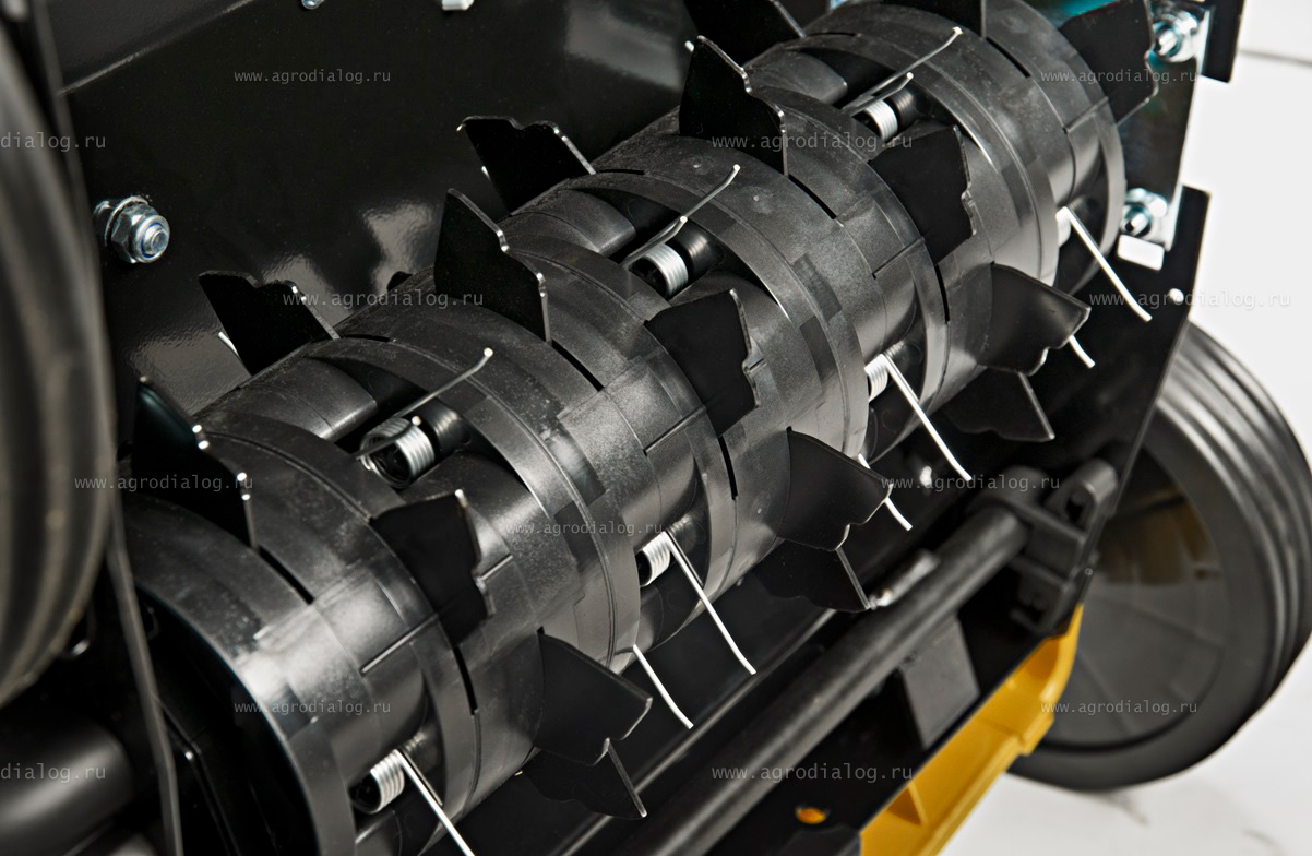 - Вертикуттер Cub Cadet XC1 B40 оборудован рабочим валом из 17 шарнирных ножей и 16 двойных пружин. Это сочетание позволяет реализовать две функции в одной машине – аэрацию и вертикуцию. Если вы желаете провести аэрацию почвы в вашем саду, используйте верхнее положение, которое обеспечит легкое касание пружинами и ножами почвы. Если нужно провести вертикуцию, используйте более низкое положение, которое позволит ножам и пружинам более интенсивно обработать почву.